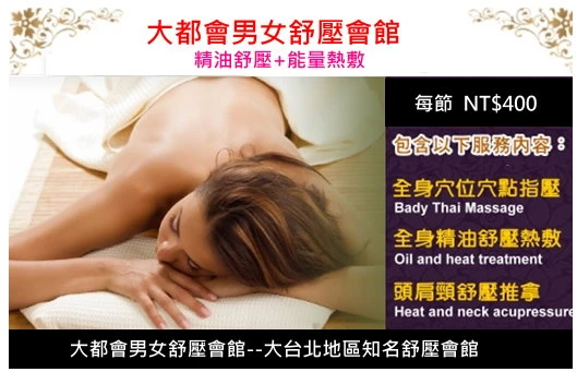 大都會男女時尚會館 指壓+油壓+能量熱敷 優惠價NT$1600/2H